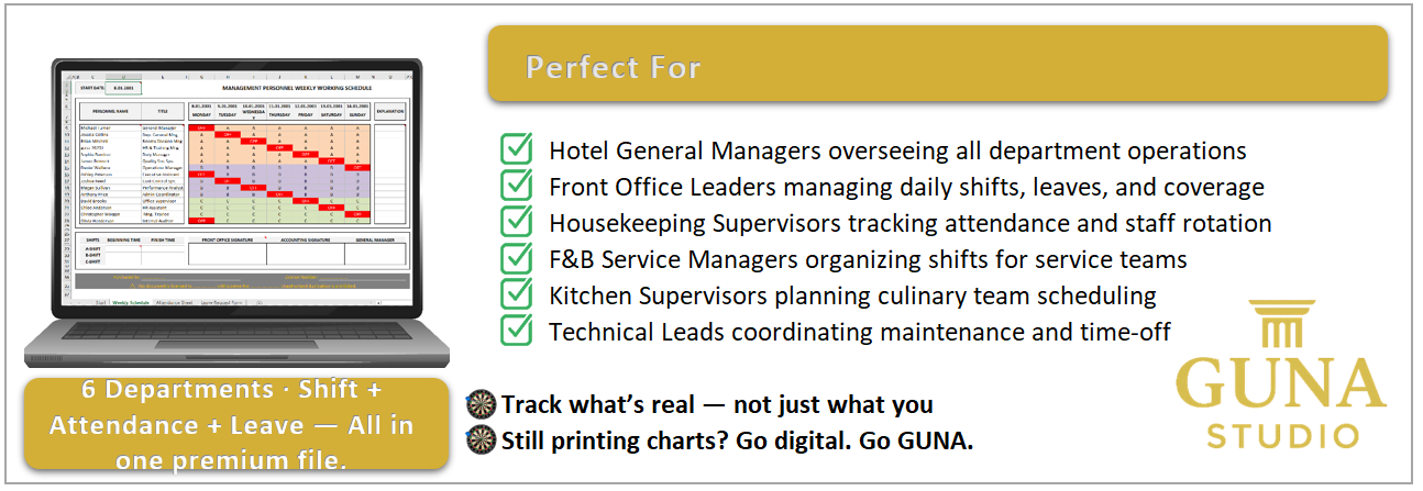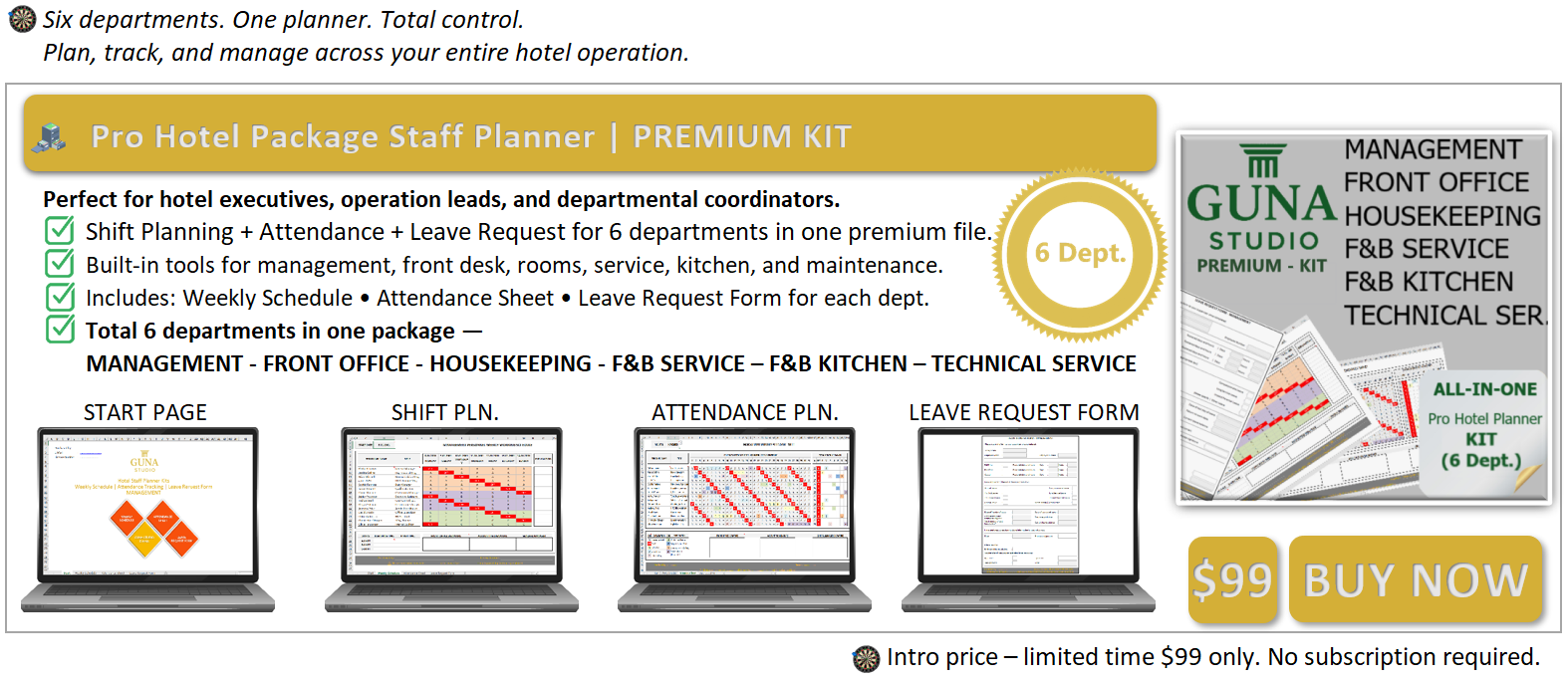 Pro Hotel Package Staff Planner | PREMIUM KIT - (6 Dept.)